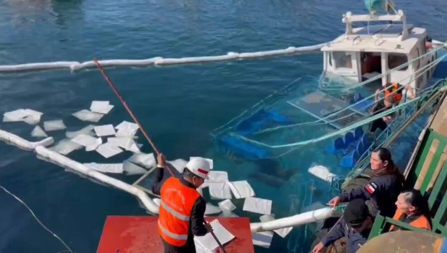 Personal de la Capitanía de Puerto Valparaíso desplegó barreras de contención para evitar una eventual contaminación y verificó la seguridad de los tripulantes, quienes no resultaron lesionados.