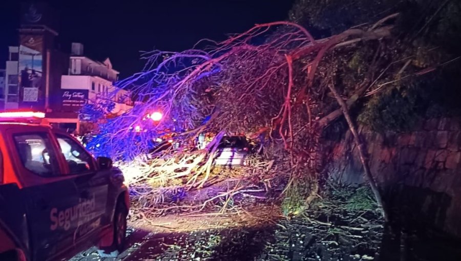 Este sábado 23 de agosto, y en una segunda ocasión en menos de una semana, cinco postes se vieron afectados por la caída de un árbol en el camino costero de Viña del Mar.