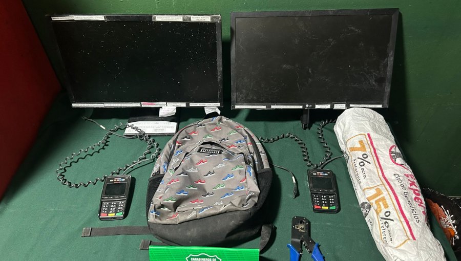En específico, se detalló que los tres antisociales ingresaron al recinto de alojamiento y sustrajeron dos monitores de computador y dos terminales de pago de Transbank.