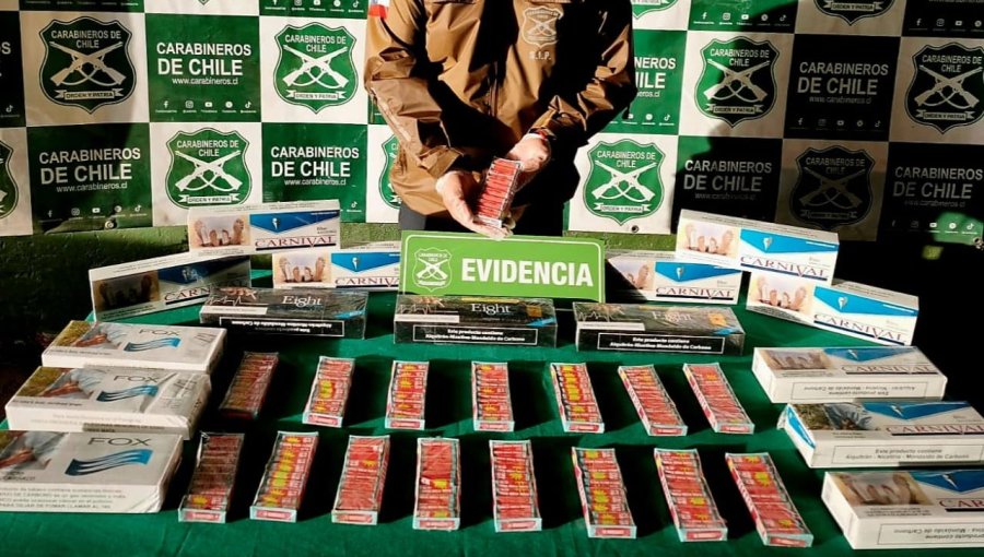 Incautan fuegos artificiales y cigarros de contrabando desde minimarket en Los Andes